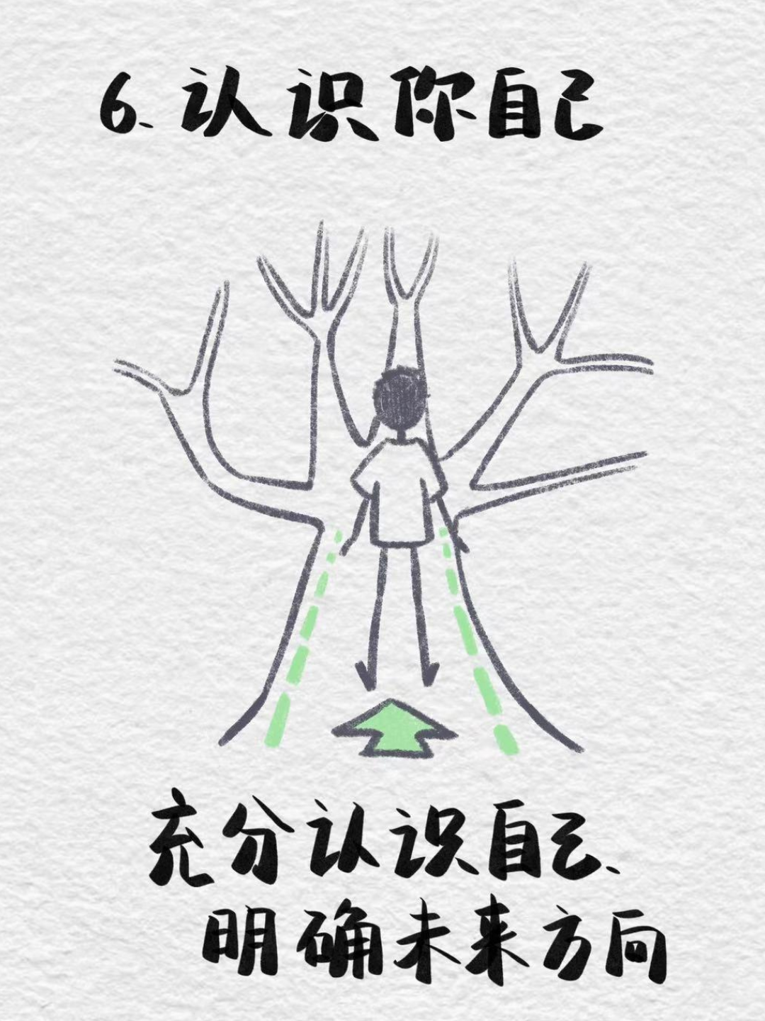 6.认识你自己🥄。上大学后你要更充分认识自己,你要知道自己的优缺点,要知道哪里还需要继续锻炼和加强,也要知道如何让自己的综合能力得到提升😏,你将来的职业定位是什么𓀈?自己可能适合的职业是什么💃🏼?要不要考研🧚🏼?这些问题都要尽早明确。
