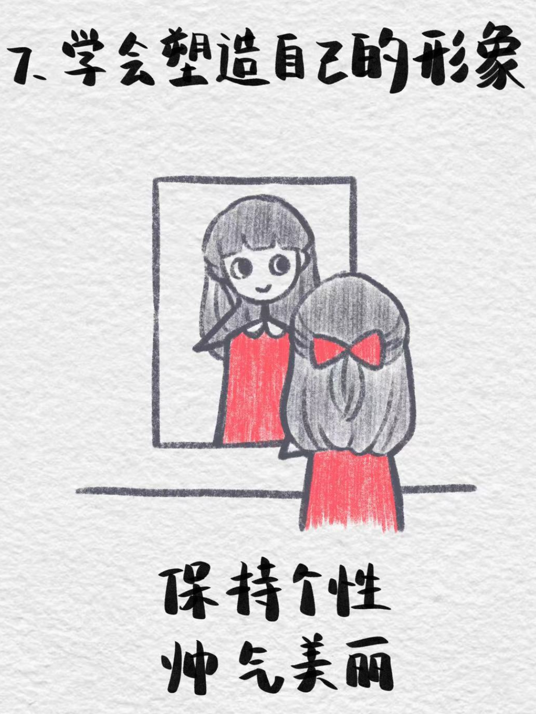 7.学会塑造自己的形象❓。上大学后,在不影响别人的前提下🌬🧯,你要有自己的个性👨🏿🦱,能坚持自己的价值观🧔🏼♂️,同时保持开放。要打理好自己的容貌和形象,没有人会愿意透过你邋遢的外表去发现你美好的心灵✴️,但是不必过分追求,只要干净、整洁、有自己的风格就好;男生,你长的可以不帅,但你可以成为帅气的男孩🧜🏻♂️。女生,你长的可以不漂亮👭🏼,但你可以成为美丽的女孩。