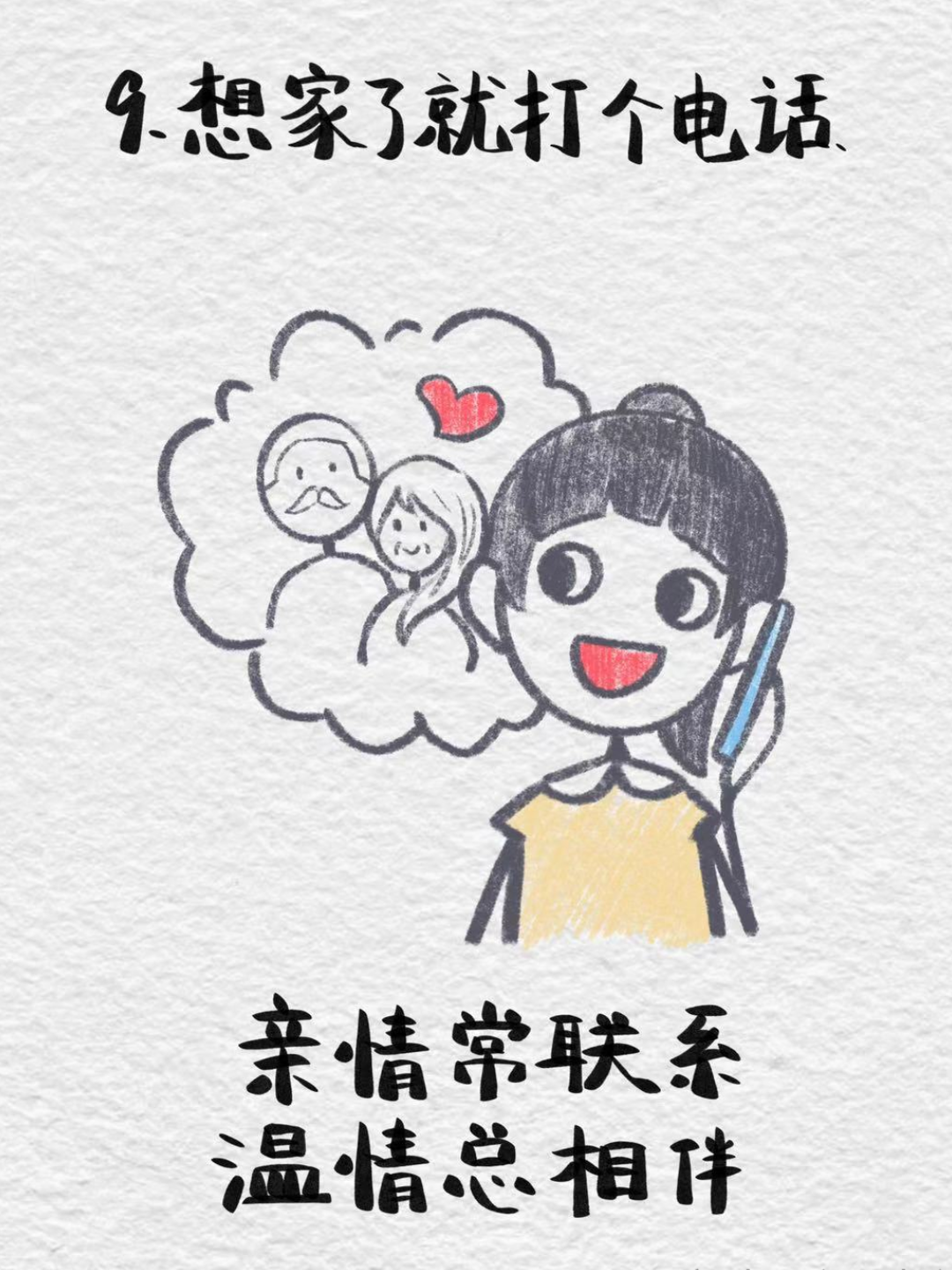 9.想家了就打个电话。上大学之后与父母的见面时间会大大减少🧑🏿🏫,我也知道有些同学恨不得早早离开父母的“唠叨”,也有些同学记恨父母对你的不公。但是,请同学们记住了,等你慢慢长大这些你都会明白也将会释怀。大学期间,你的父母依然是你情感的寄托人,是你心灵受伤时的抚慰者🧈👨🏻🏫,是你疲惫寒冷时的温暖港湾,他们永远是你坚强的后盾。