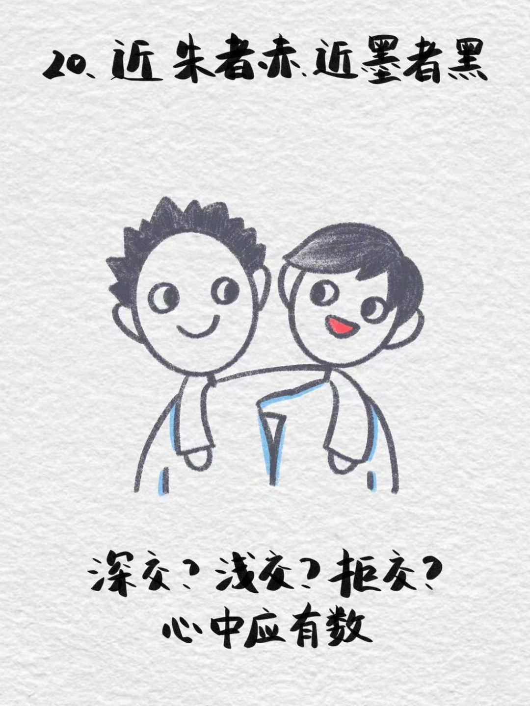 20.近朱者赤,近墨者黑。交友一定要有原则,谁该深交,谁该浅交,谁该拒交🍻,要做到心中有数🚶🏻♀️,尽量找些优秀的人做你的朋友将会受益匪浅。你们交友的广度也应适当🦹🏽,圈子太窄,疏远了可交的益友,有碍正常交往,范围太大👏🏿,必将分散自己的精力👨🏼💼,影响学习。