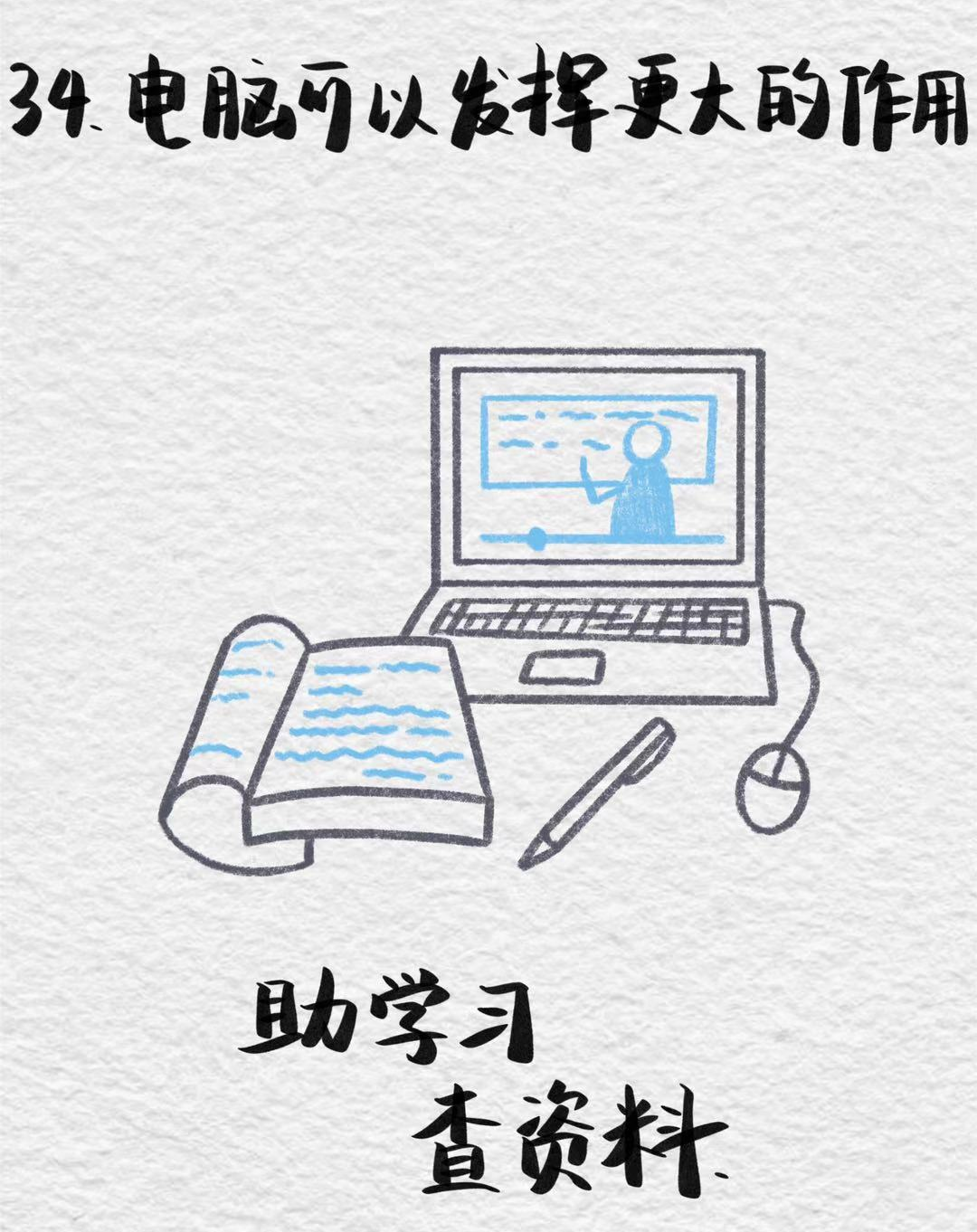 34.电脑可以发挥更大的作用👬🏼🧑🏽🏭。上大学了,80%以上的同学都会带电脑来学校🏇🏼,你当初的设想是有电脑可以更好的帮助你学习🙎🏼♀️、查资料。但是,万万想不到,很大一部分同学把电脑当成游戏工具或者看剧的工具☞。让人难受的是,有不少同学迷恋网络游戏,有的不去上课👷🏿🧕🏿,黑白颠倒,甚至干脆不出门🌵,也有的彻底毁了自己,挂科、旷课、退学👌🏻、甚至身体受到严重伤害。我真的希望你们的电脑能发挥更大的作用🥦。