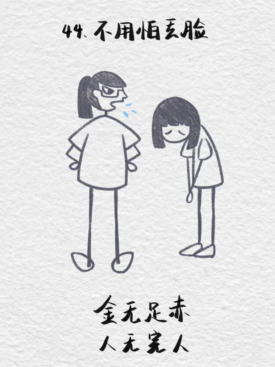 44.不用怕丢脸。永远别渴望做个任何人都不得罪的人,这不可能,事物都有两面性,任何事都有人反对,也有人支持👩🦼,这是不可能十全十美的。有时候在大学里你的尊严可能会被打碎,这不重要🫴🏼,重要的是你要让自己的尊严有足够大的承受力⛏,而且你要相信在大学里你的“丢脸”也许换来的是一次教训、一次激励🧑🌾,大家不会去记得这些事情🚣🏻♂️,但等进入社会之后再发生“丢脸”的事情可能就真的是“丢不起”了。