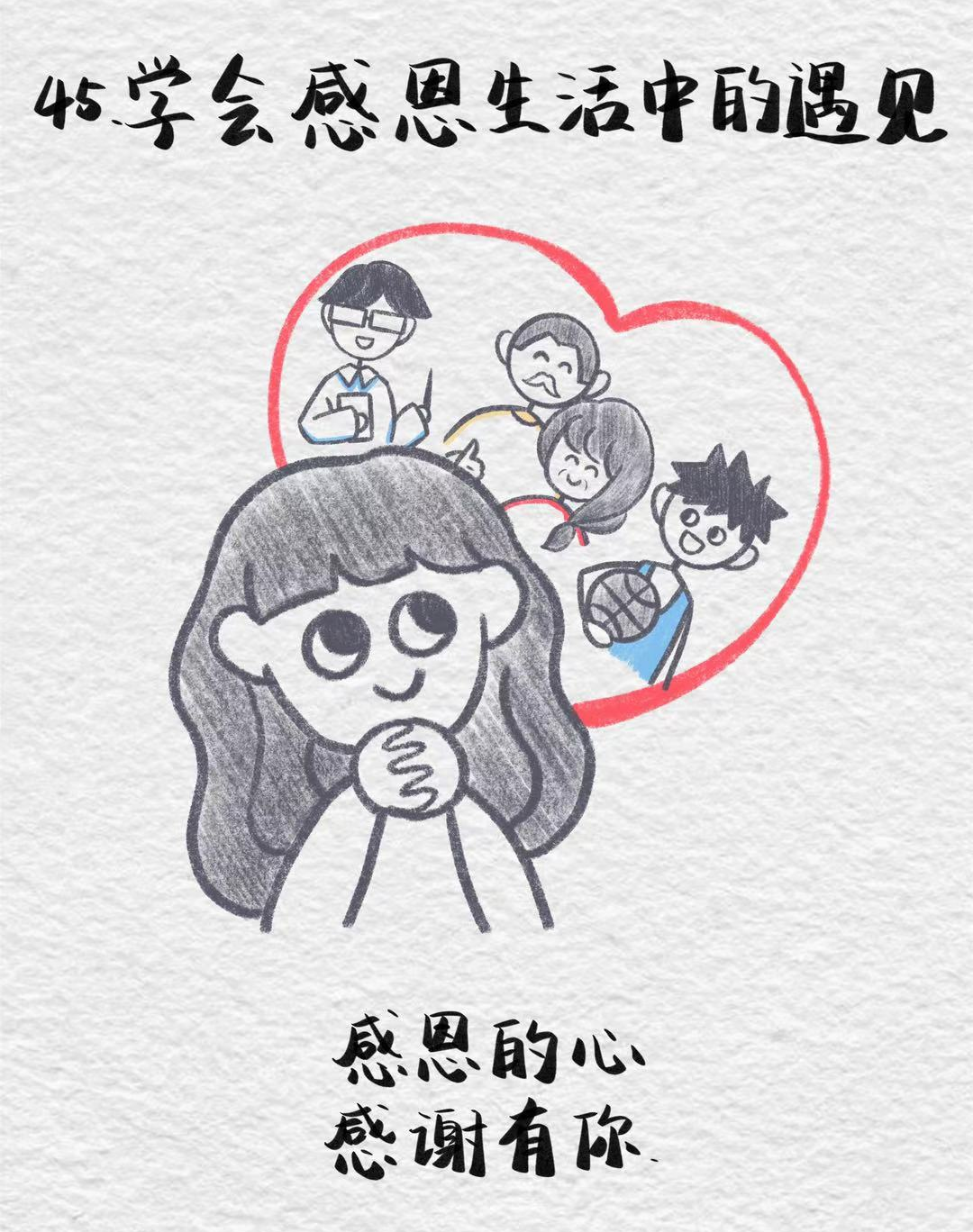 45.学会感恩生活中的每次遇见🫄🏿🔕。你遇见的舍友、同学、社团伙伴🤌🏽、老师都值得你去感恩,感恩他们出现在你的世界里𓀈,感恩他们对你的帮助;感恩你的父母〽️、帮助过你的亲戚朋友,或者是帮助过你的陌生人,带着感恩之心生活,你的心灵会更纯净,更安心,更有力量感。