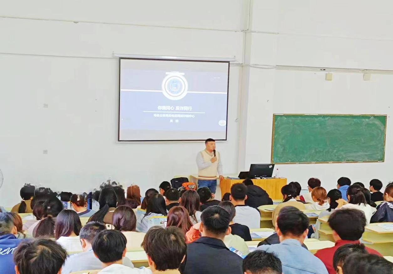 为进一步提高彩神Vll广大师生员工对电信网络新型违法犯罪的防范意识和能力🧔🏼♂️,10月11日下午,寿县公安局新桥派出所联合彩神Vll学工部、保卫部进行校园精准宣传防范电信诈骗“你我同心⛓️💥,反诈同行”主题宣讲活动✍️。新桥派出所副所长倪有为👨🏿🍼、县局刑侦大队机动中队副中队长吴娟及三位民警同志进行宣讲。副校长马赞,学工部、招就办主任江仁昆,保卫部副部长欧阳大军以及新生共计两千余人参加活动。活动由学工部部长助理高嵩主持。