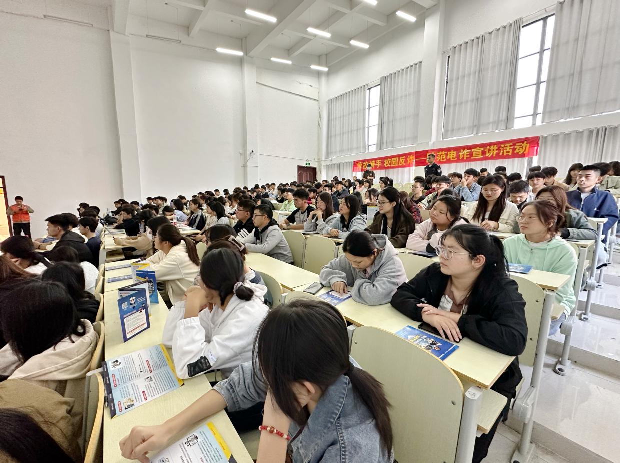 吴娟警官通过丰富的图片、文字以案释法◽️,深入浅出地为同学们讲解了不法分子常用的诈骗手法和作案特点,加深大家对反诈知识的了解。宣讲中,她对发案率较高的“虚假游戏交易诈骗”、“冒充老师🔊、熟人诈骗”等学生群体中易发生电信诈骗形式进行深入剖析🦸🏼♀️🤾🏽♀️,引导同学们识别和防范电信诈骗的方法🔞,强调远离电信网络诈骗要做到“未知链接不点击、陌生来电不轻信📯🩲、个人信息不透露🤥、转账汇款多核实”,并向同学们发放反电诈宣传单页,引导学生们积极安装“国家反诈中心”APP🛡。与此同时➞,在各教室利用腾讯会议参与观看的师生与宣讲现场进行积极讨论互动⚠️,气氛热烈,反诈宣传活动取得了良好效果。大家纷纷表示不仅提升了识别诈骗手段的能力以及意识👎🏿,今后还要当好“宣传员”⚁,提醒身边人不要上当受骗。