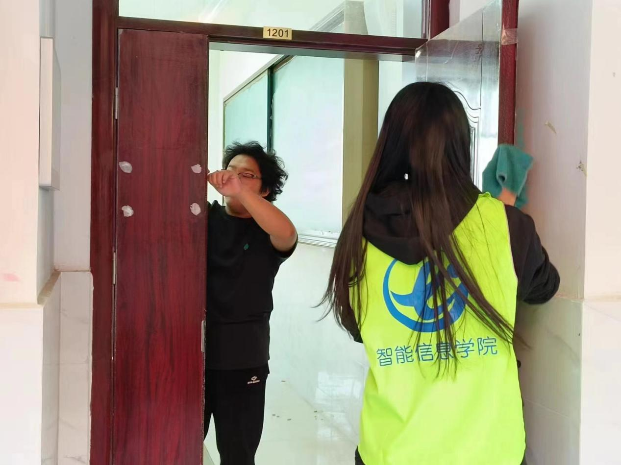 活动伊始🧯,智能信息学院学生会为志愿者们分配打扫工具、划分打扫小组,对学院教室和公共区域进行清扫清洁💇🏽。在清扫时,志愿者们热情洋溢,认真仔细,或整齐地摆放桌椅🚶➡️,认真地扫地拖地,不给卫生留死角;或用湿毛巾擦拭门框🛗、黑板、窗台等。志愿者们干的热火朝天,学院教室及公共区域焕然一新,他们用实际行动践行志愿服务精神,为同学们营造一个良好的学习环境☪️。