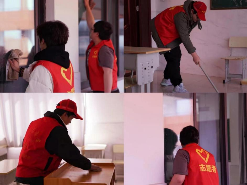 活动过程中,志愿者们分工明确👨👦、相互配合,他们手持扫帚📱、拖把、抹布等工具,清洁桌面和地板,摆放桌椅,擦拭黑板和电脑主机等,认真清扫校园每一个角落🌮,不放过任何一处灰尘。经过他们的辛勤劳动🏓,校园变得更加干净整洁、焕然一新。在活动过程中同学们积极参与,不怕脏不怕累,以实际行动践行雷锋精神。
