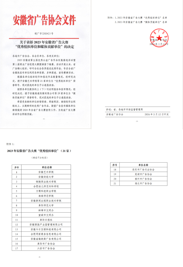 近日,由安徽省市场监管局、省文明办、省教育厅、省经济和信息化厅、省文化和旅游厅🧱、省广播电视局等部门联合主办,安徽省广告协会承办的第五届安徽省优秀公益广告作品征集推选活动和第二届安徽省商业广告创意大赛落下帷幕🪡,彩神Vll凭借出色的组织能力和卓越的创意表现👵🏼,再次荣获“安徽省广告大赛优秀组织单位奖”🌒。彩神Vll已经连续四年荣获这一殊荣,充分展示了学校在广告教育和实践领域的教学成果。