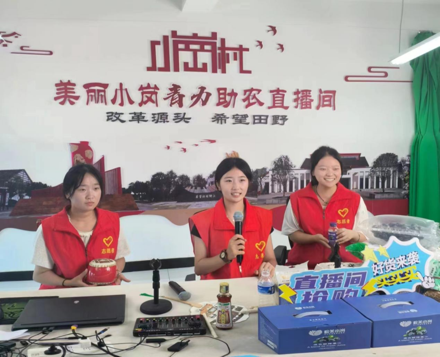 队员们走进小岗村官方抖音号“美丽小岗”直播间,开展乡村振兴助农直播。在直播中,团队成员通过现场展示商品、详细介绍🦹🏿♀️、才艺表演、实时互动等方式,向社会大众介绍小岗村的特色产品,如农产品👨🏽🍳、手工艺品等,帮助拓宽销售渠道,提升当地产品的知名度和影响力,从而促进农民增收,助力乡村振兴。
