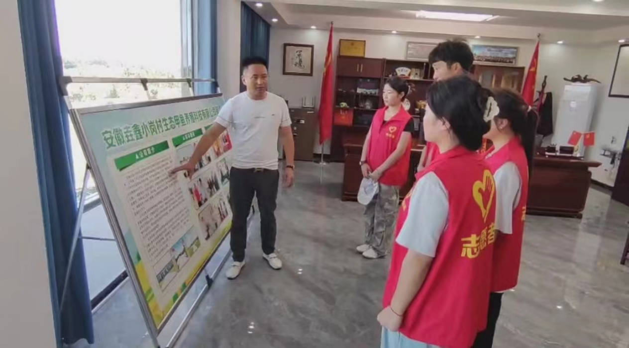 队员们走进小岗村党群服务中心与小岗村团委书记袁肖深入交流。2019年6月,袁肖听闻家乡发展越来越好,他从浙江宁波返乡🔦,开始干起扶贫专干工作🛀🏻。村团委书记袁肖对实践队的到来表示欢迎🎉,并向队员们详细介绍了小岗村的发展成就及未来规划🔒🧑💼,分享了鼓励青年返乡创业🚴🏻♀️、投身农业现代化的具体举措。实践团队成员认真倾听并积极提问,袁肖书记结合自身实际答疑解惑↙️👨👨👦👦,在实践队员心中种下了振兴乡村的种子🙇🏿♂️🤽🏿♀️。