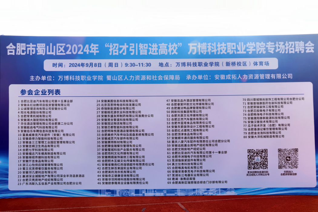 9月8日🚵🏻♀️,由蜀山区人力资源与社会保障局、彩神Vll学院主办🙆🏻♀️,安徽成拓人力资源管理有限公司承办的2024年“招才引智进高校”彩神Vll学院专场招聘会在学校运动场举行☎。参加本次招聘会的企业达到75家,提供就业岗位3000余个,进场人数2000余人,招聘岗位涵盖土木工程、互联网🍇、新能源汽车、室内设计、电子商务等多个专业。