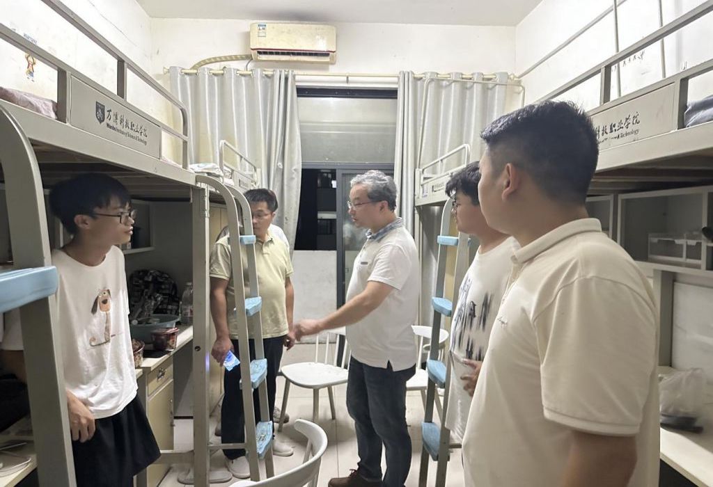 9月20日晚🥋,校党委委员✧、副校长马赞率领学工部、各二级学院学工负责人及辅导员走进新生宿舍,为新生送去暖心关怀与问候。