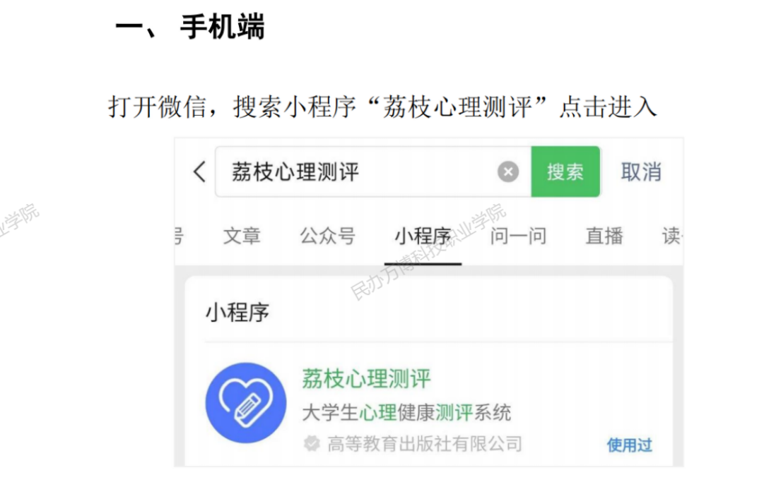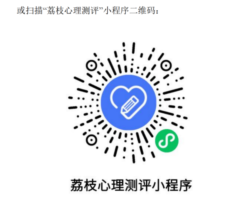 第一种登陆方法是用手机微信扫描二维码登陆进入🌟,或直接在微信小程序里搜索小程序“荔枝心理测评”