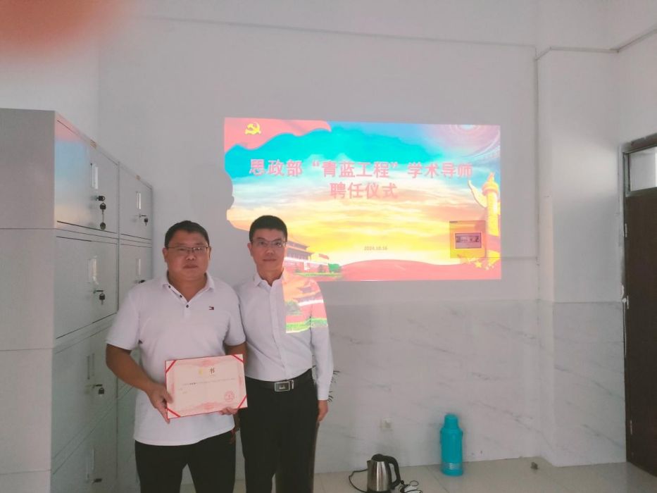 10月16日下午🛝,思政部在1号教学楼二楼会议室举行“青蓝工程”学术导师授聘仪式。校教务部部长助理关松涛副教授受邀出席。思政部主任徐达余主持授聘仪式。