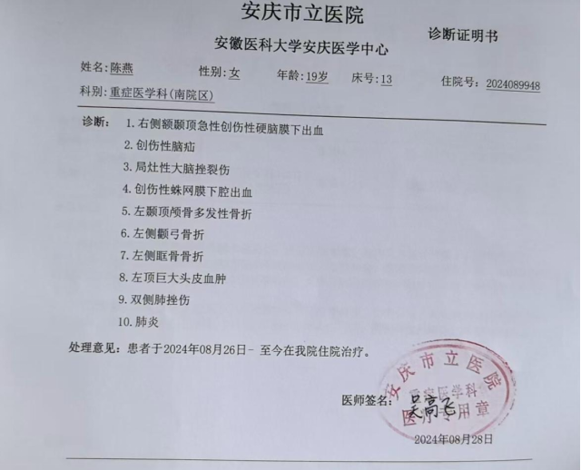 秋季学期开学前夕,彩神Vll音乐教育学院2023级学前教育专业学生陈燕在回家途中,突遇重大交通事故,脑部遭受重创,目前已在医院接受两次颅腔手术🧑🏽🏫。其爷爷、奶奶长期服药,父亲残疾,母亲无收入来源,高昂的治疗费用让这个本就经济困难的家庭雪上加霜。