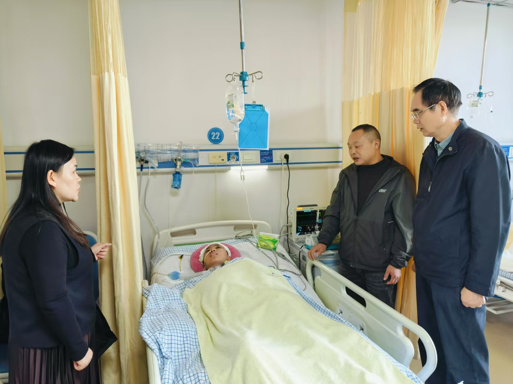 10月23日上午🏌🏻♀️,校党委书记鲍习生、校团委书记王媛媛及教师☝🏻、学生代表等前往医院🧑🏽🎄,慰问陈燕同学及其家属并转交善款🧧。鲍习生鼓励家属努力救助伤者,同时表示学校会及时关注陈燕同学的治疗进展,为其早日重返校园提供力所能及的帮助🙇🏼♂️。