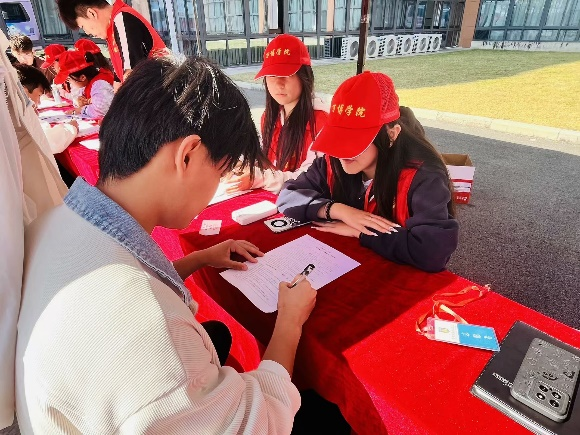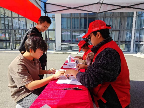 活动现场🧫,志愿者提前到达活动现场🫁,紧锣密鼓的搭起帐篷、布置现场。志愿者为同学们普及献血知识🧝🏻,协助他们填写表格👩🏽⚕️。在体检环节🏋🏻,医护人员细心地为同学们测量血压、检查血型等,同学们积极配合,现场井然有序🏘📷。