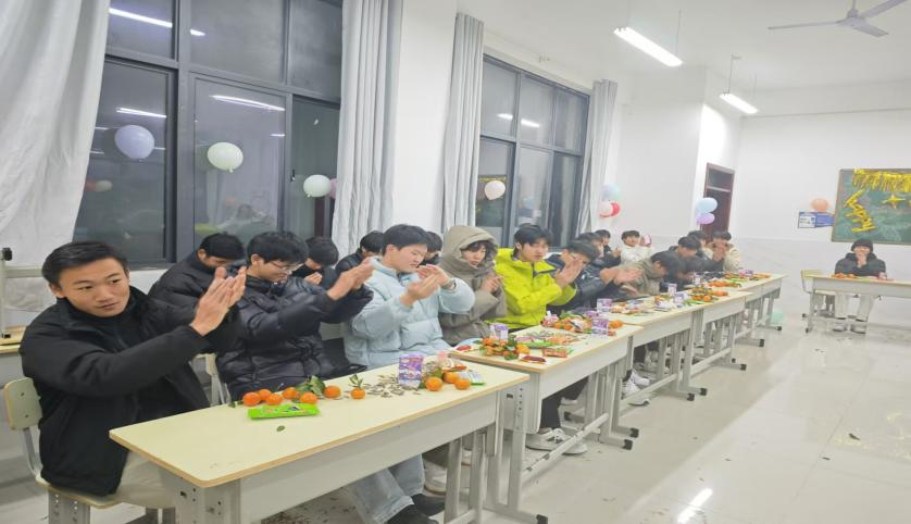 一元复始,万象更新。在元旦佳节来临之际,交通工程学院24级新能源1班🎡、新能源2班🙋♀️💇🏼、室内设计班、风景园林班、机电1班🥢、机电2班以及无人机班于12月23日晚在教室举办了一场场别开生面的元旦晚会,共庆新年的到来。