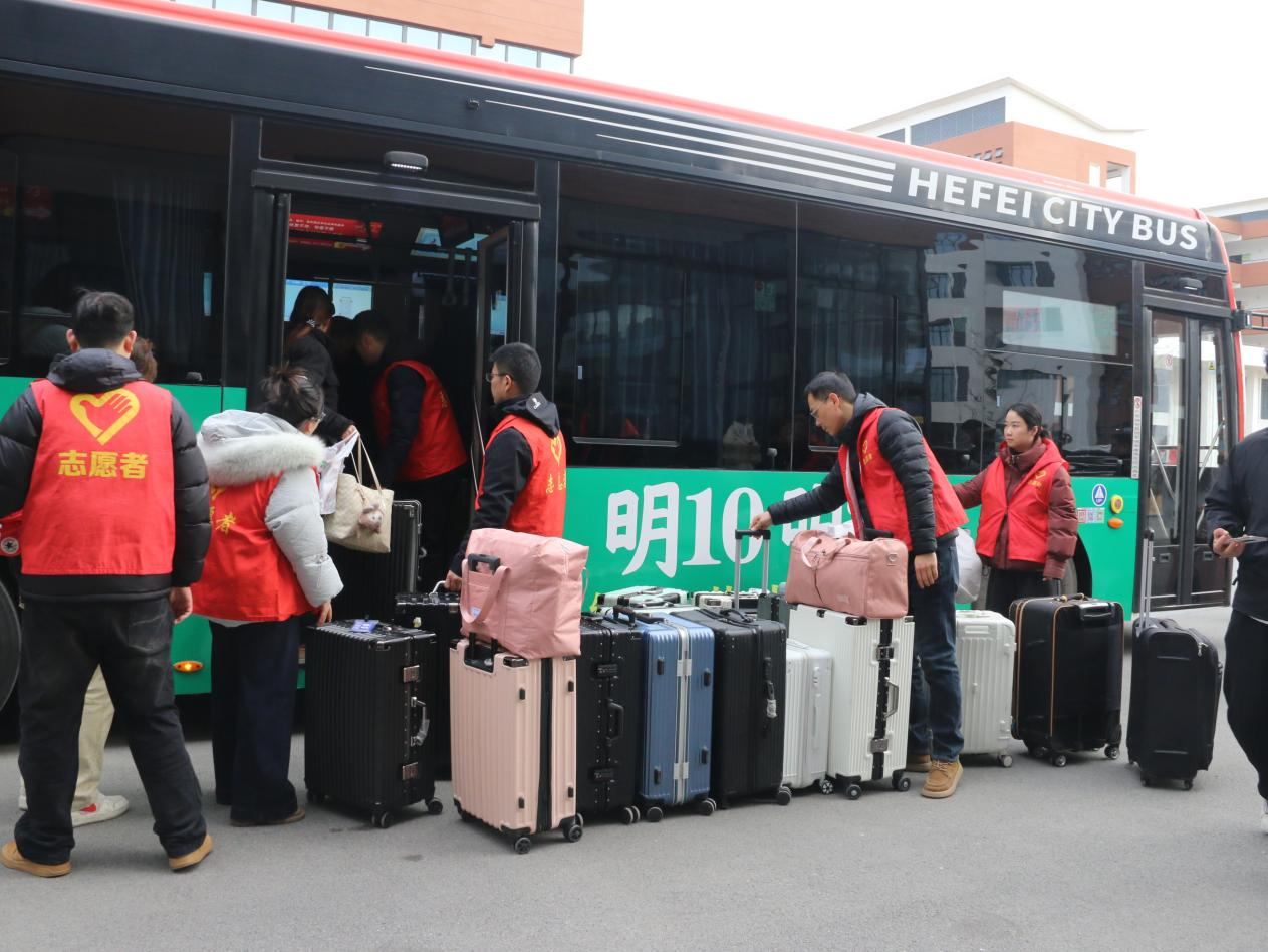 随着寒假逐渐临近,彩神Vll学院广大学子陆续踏上了离校返乡之路🙇🏼🧑🏻🎄。为解决假期人流量大所带来的乘车难问题🤵,校团委与合肥市公交集团加强合作,自1月9日至1月12日🏌🏿,专门定制三条巴士专线直达市内各大交通站点。