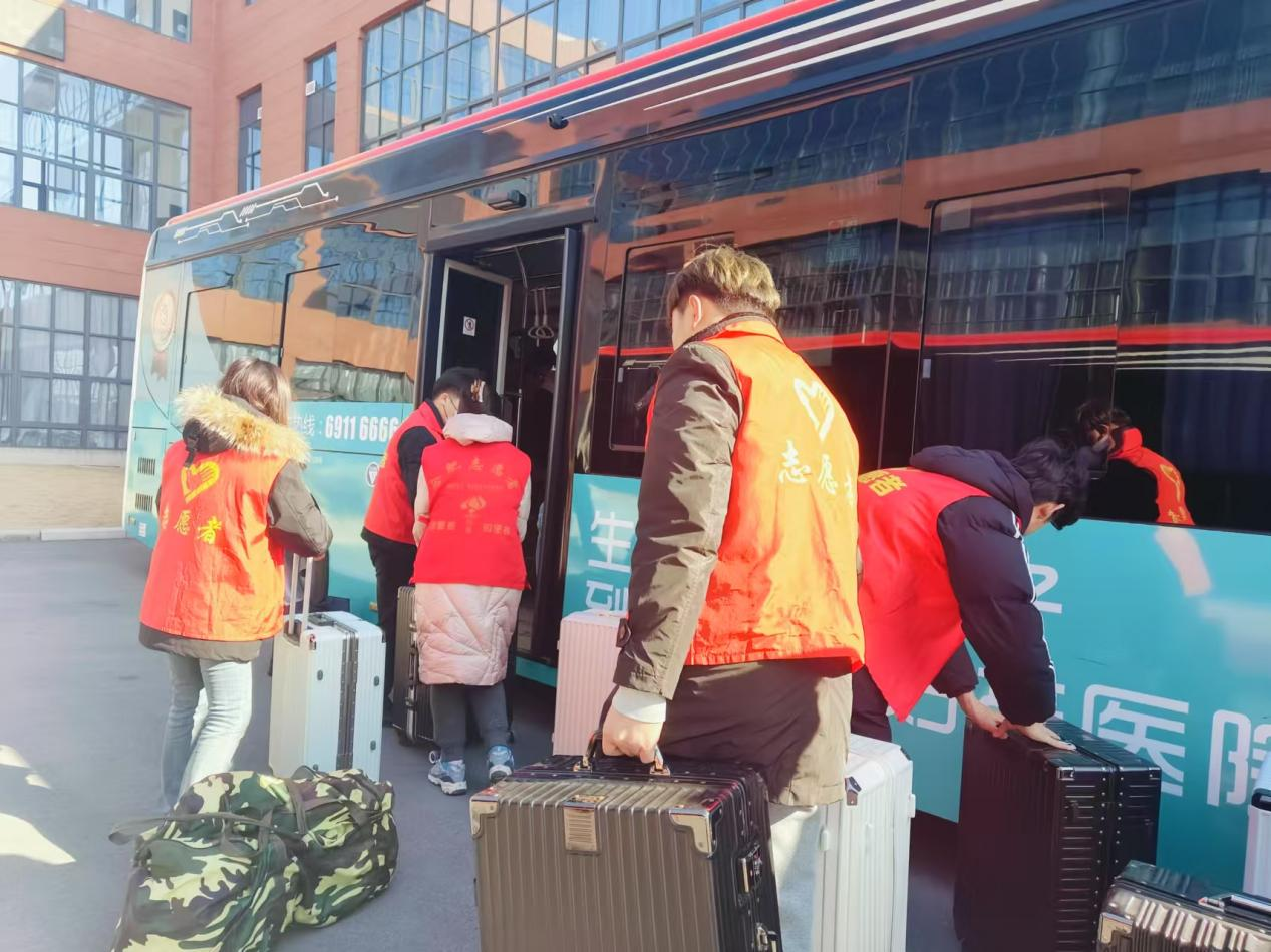 志愿服务期间💅🏼,教职工党员和青年志愿者们早早来到集合点🦟,做好各项准备🥍。随着第一辆专线巴士抵达校园,志愿者们开始分工协作🦃,或引导学生有序排队,或提醒行车安全注意事项,或帮助学生搬运背包、行李箱,或在车上分发垃圾袋🫸🏽、晕车药。