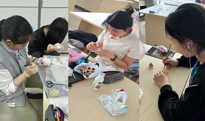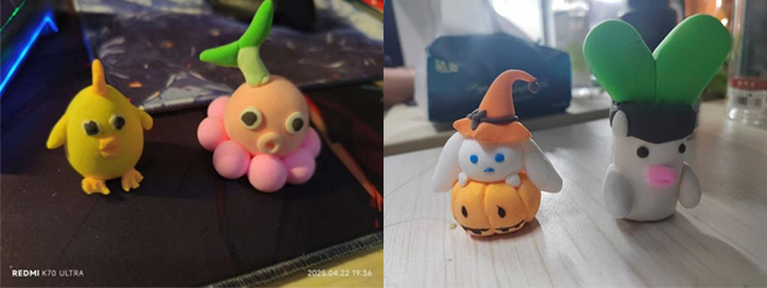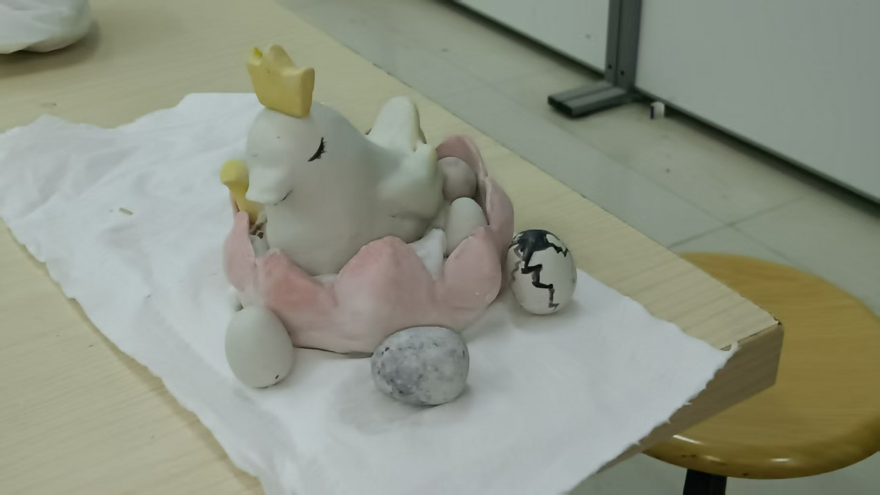 学生们的作品充分体现出对非遗泥塑的理解与创新:有的以“祥兽瑞禽”为题材,塑造吉祥寓意的传统形象;有的将当代流行元素融入传统技法👮🏼,创造出融合漫画风格与传统造型的趣味作品🏊🏿♂️;更有学生尝试将泥塑小件设计为室内软装装饰模型🧚🏿,拓展了非遗技艺在现代设计语境中的应用边界。
