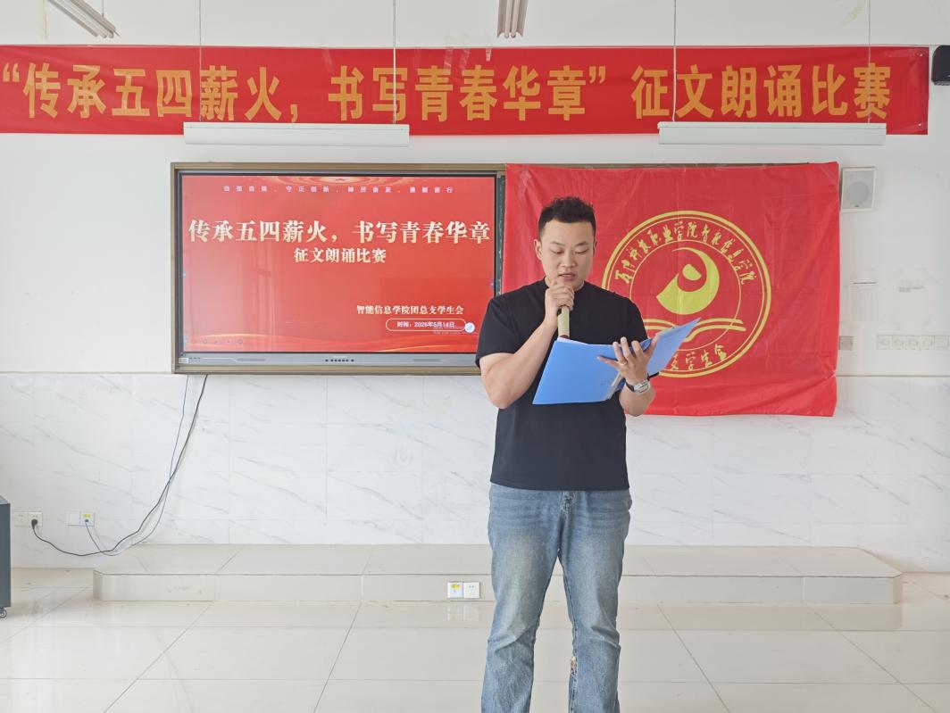 为赓续五四精神血脉🧘🏼♂️,厚植青年学子爱国情怀,5月14日,智能信息学院学生会在1201教室成功举办“传承五四薪火,书写青春华章”征文朗诵比赛,以文抒志👨❤️💋👨、以声传情,奏响青春奋进强音9️⃣。