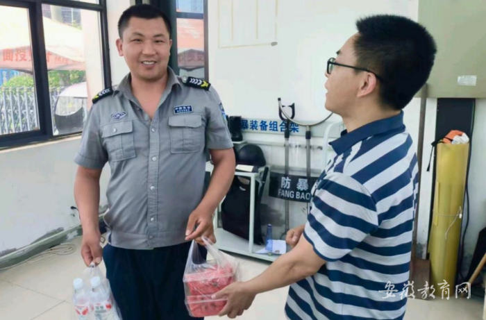 活动中🚶🏻♀️➡️,工作人员将精心准备的西瓜、矿泉水等防暑降温物品一一送到教职工、保安、宿管和保洁人员的手中🤜🏼👨🏽🎤,感谢他们在炎炎夏日里在各自岗位上的辛勤付出🛢,提醒大家注意劳逸结合🧝🏿♀️,做好防暑降温。