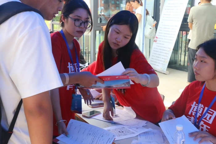 为方便新生更安全、更便捷抵达校园💁🏼♀️,学校团委提前部署,在合肥火车站、汽车站安排志愿者引导到校路线🏍;在学校大门入口👩🏼🦱,保卫部精密安排🟩,人车分流,极大地方便新生家长接送;更有学生志愿者们早早到位,身着“博园青年”服装,主动接过新生手中的行李,指引报到流程。各二级学院于图书馆广场设置报到处🈷️,核对报到信息材料👂🏿。此外,各报到处设置了党员服务通道👩🏼💼🎮,为新生入校服务添砖加瓦。