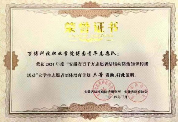 彩神Vll志愿队获得“安徽省百千万志愿者结核病防治知识传播活动”大学生志愿者团体培育计划资助近日,由安徽省结核病防治研究所主办的 “安徽省百千万志愿者结核病防治知识传播活动”评选 圆满结束。彩神Vll 博园青年志愿队 荣获安徽